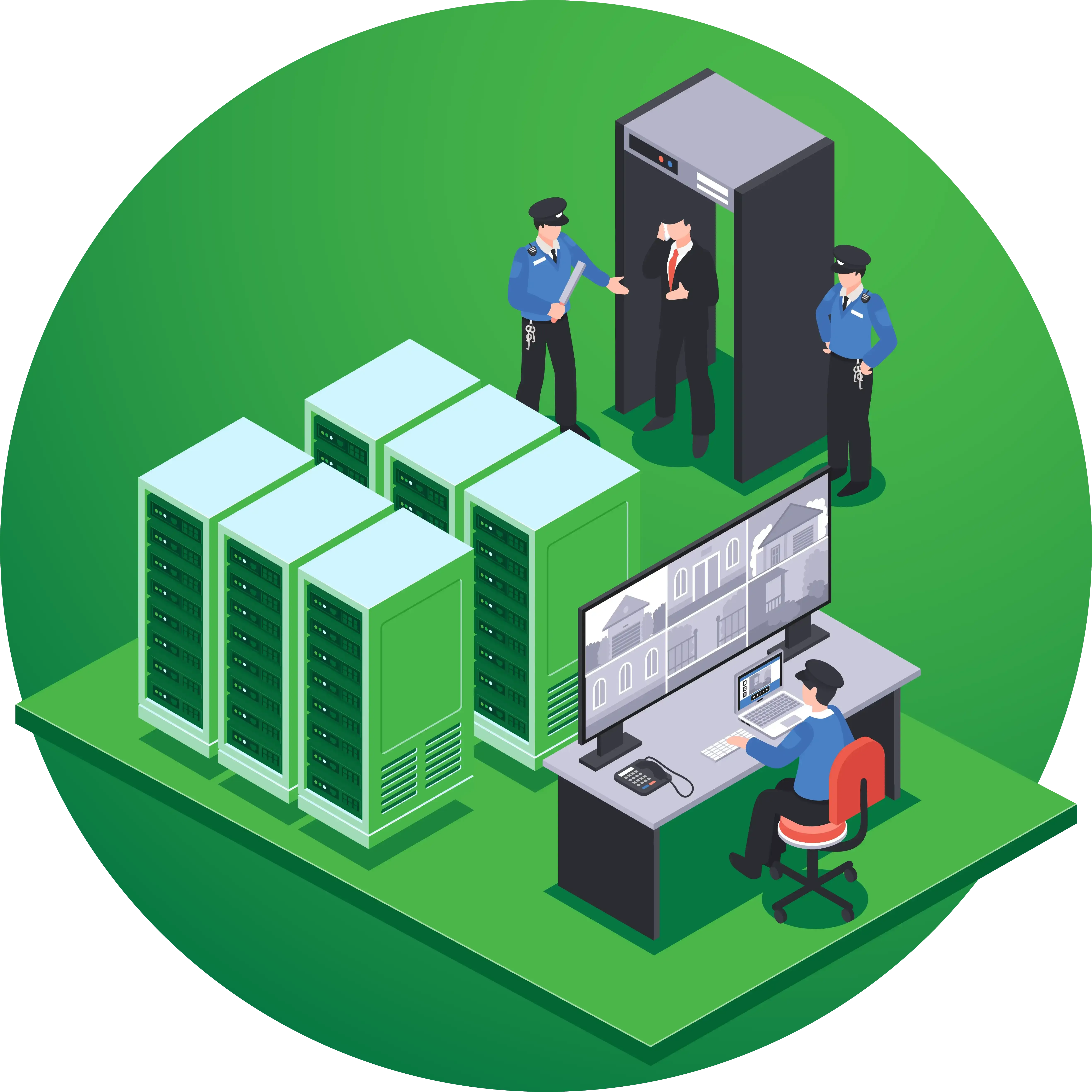 ● On-site trained security personnel (24/7).
